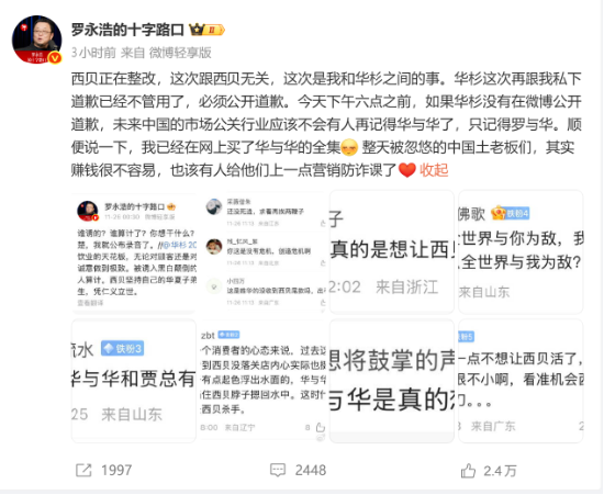“今天下午6点之前,如果华杉没有在微博公开道歉,未来中国的市场公关行业应该不会有人再记得华与华了,只记得罗与华。”